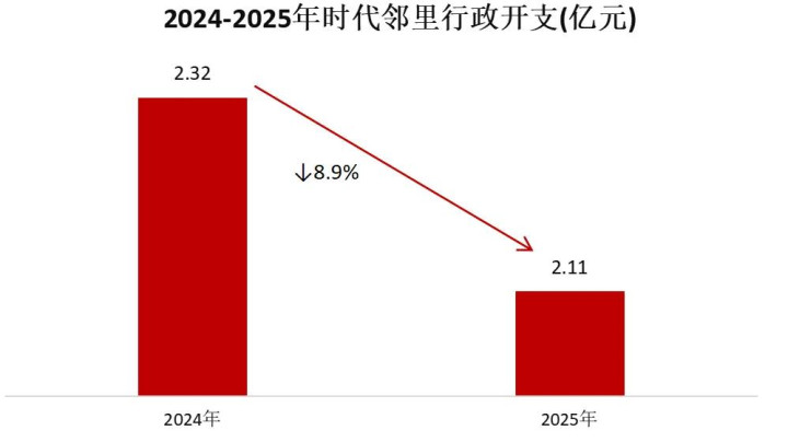 物业权威研究机构克而瑞物管研究显示,在时代邻里2025年的年报中,科技带来了实打实的财务改善。2025年,时代邻里行政开支减少至2.11亿元,同比下降8.9%。另外,得益于数智化转型,报告期内时代邻里管理费率下降1.2个百分点,组织效能显著提升。