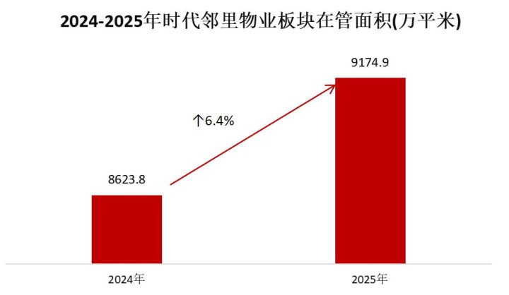 时代邻里持续深耕大湾区、长三角、成渝、长江中游等核心城市群,在住宅、产业园、公建等核心业态上构筑显著优势,有质量的增长为长远发展奠定了坚实基础。截至2025年12月31日,时代邻里在物业管理服务板块的在管面积达9174.9万平方米,同比增长6.4%。这得益于时代邻里持续加大独立第三方市场拓展力度,凭借专业的服务团队、良好的服务品质及市场口碑,争取更多第三方客户合作机会。截至2025年12月31日,时代邻里通过第三方市场拓展所获得的管理规模占物业管理板块总管理规模的比例达到63.8%。