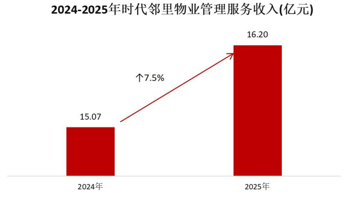 物业权威研究机构克而瑞物管认为,时代邻里的财务结构展现出了极强的韧性,利润的高增长并非偶然,而是业务结构优化的必然结果。物业管理服务始终是时代邻里最坚实的底盘。2025年,该板块收入达到16.20亿元,同比增长7.5%,占总收入比重提升至64.9%。