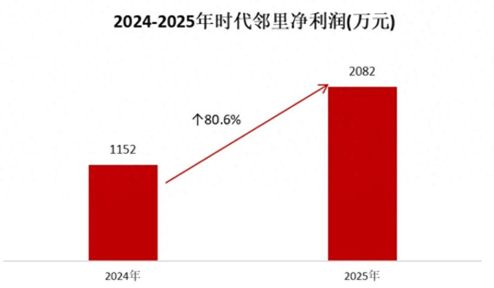 根据业绩公告,时代邻里2025年全年实现收入24.96亿元,同比增长4.5%。虽然这一增速在绝对值上并不算惊人,但其背后的利润表现却极为抢眼:净利润达到2,082万元,同比增幅高达80.6%;核心净利润为2.02亿元,同比增长8.1%。在营收保持正增长的同时,净利润翻倍式增长,这标志着企业已经从单纯的规模扩张,转向了追求经营质量的“内生式增长”。