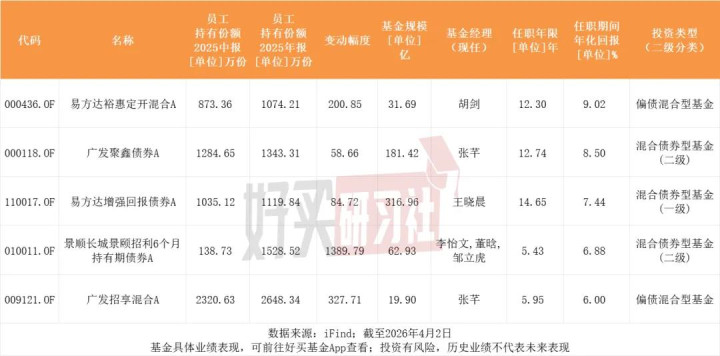 因为内部员工重仓持有的基金,多是主动权益基金,而基金经理是基金产品的核心灵魂。需要考虑基金经理的稳定性以及中长期业绩表现。